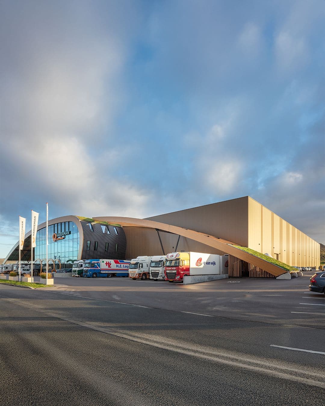 Voor Hardeman Egg Group realiseerden we in 2023 de complete dak- en gevelmontage van hun nieuwe distributiecentrum in Barneveld. In dit hypermoderne pand worden wekelijks meer dan 50 miljoen eieren gecontroleerd, verpakt en klaargemaakt voor verzending. In opdracht van Bouwbedrijf W. Hardeman B.V. verzorgden wij de montage van alle geïsoleerde dak- en gevelpanelen, inclusief zetwerk, aluminium composiet en binnenafwerking. Het resultaat: een indrukwekkend en functioneel gebouw waar vakmanschap, tempo en uitstraling samenkomen.